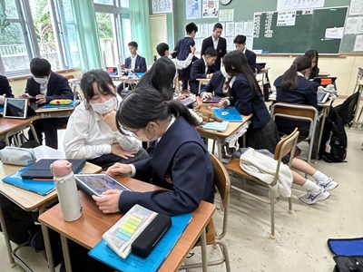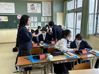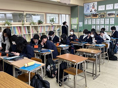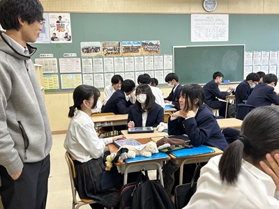 2年生のハピトラ成果報告会に向けて、自分たちの企画を提案する準備が進められています。先生方からよりよくなるアドバイスをもらいプレゼンの修正をかけていました。より相手に価値を伝えられるるようにどのグループも試行錯誤が続いています。
