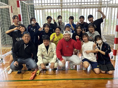 先日、株式会社琉創希の平田社長から、ハンドボールのゴール一式が寄贈されました。ハンド部の皆さんも大喜びです。ネットの取り付け作業を教えていただき、新品のゴールの前で記念撮影を行いました。大切に使わせていただきます。ありがとうございました!