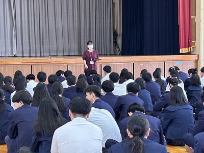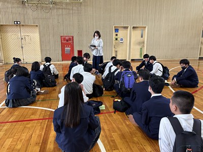 いよいよ明日から2日間、県立高校入試です。5校時、3年生は体育館に集合して試験会場下見に行く前の出発式を行いました。進路主任の育美先生から諸注意、学年主任の里子先生からは激励の言葉をもらい、3年生はそれぞれ受験する高校別に分かれて引率の先生と打ち合わせを行いました。表情を見ると緊張しているようには見えませんが、しっかりと会場を確認して、明日は全力が出せるよう、さあ、3年生の皆さん、気をつけていってらっしゃい!
