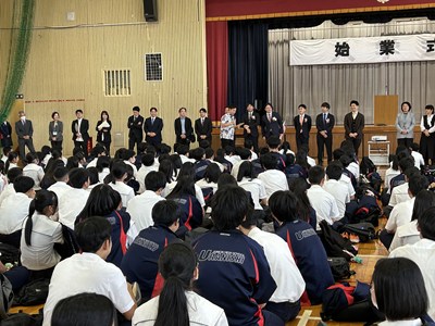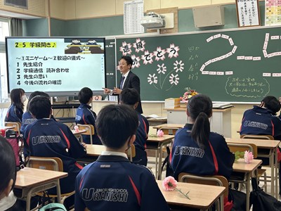 令和7年度、新任式・始業式で浦西中学校は元気にスタートしました。今年度は16名の新職員を迎え、協働体制で教育活動を展開していきます。始業式では2年代表の與那原さんが「1年生にかっこいいと思われるような先輩となって頑張りたい」、3年代表の宮城さんが「後輩たちの見本となって浦西中を盛り上げ、記憶に残る1年にしたい」と力強く代表あいさつをしてくれました。その後担任発表で大いに盛り上がり、初めての出会いを大切にそれぞれの学年で学級開きが行われました。ゲームをしたり、自己紹介で盛り上がったりと、楽しい笑い声が教室に戻ってきました。