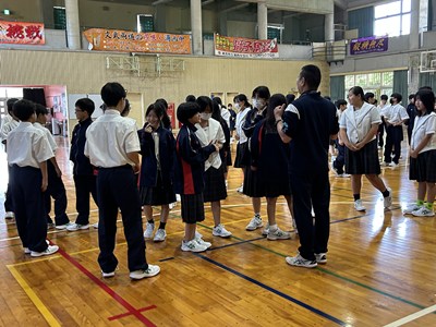 本日1校時、1学年の学年開きが行われ、中学校生活のスタートを楽しい雰囲気で始めることができました。1年生の皆さんも少しずつ緊張もほぐれ、レクを通して笑顔があちこちで見られました。サイレントバースデイで一列に並ぶことができたら、担任の先生の名前を身体で表現しました。みんなで協力して成功すると嬉しいですね!