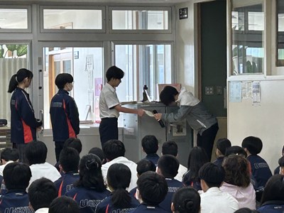 本日、学年朝会が行われ、1学期の正副級長の任命式がありました。楽しい学級づくりに貢献したいという意欲のある皆さんが選ばれました。学級の組織づくりや遠足の取り組みなど、担任の先生や学年の先生と一緒に力を発揮してくださいね!