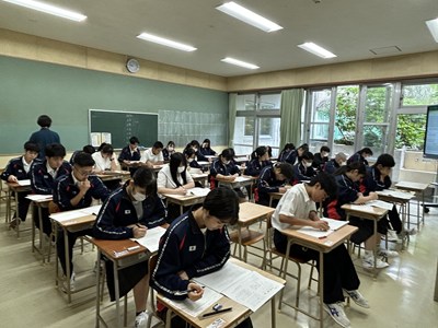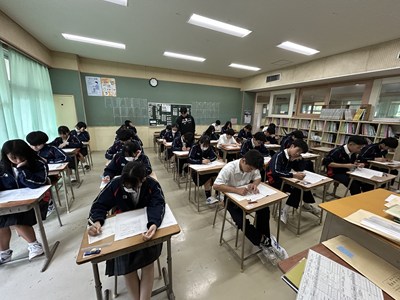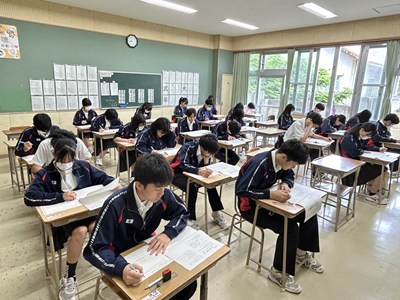 公開日 2025年04月17日 本日、3年生が全国学力・学習状況調査にチャレンジしました。全国一斉に実施される学力調査です。3年生は真剣な表情で国語と数学の問題に取り組みました。今年度は受験生だという自覚がしっかりと表れていますね!