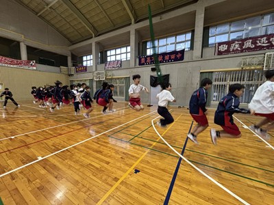 公開日 2025年04月18日 体育の授業で2年生が大縄跳びに挑戦しました。綱をまわす人も跳ぶ人も、みんなで協力して連帯感も一緒に育まれています。一生懸命な表情がとても素敵ですね!2年生のチームワークにこれからも期待しています!