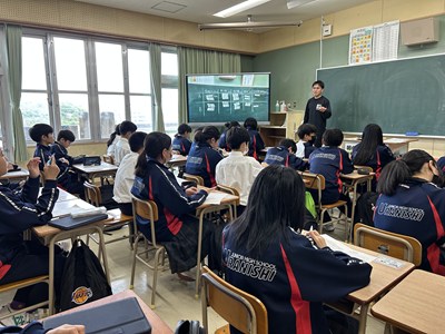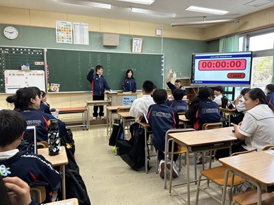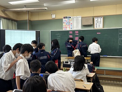 今日の1年生はそれぞれの学級で30日に行われる遠足でのレク「バケツリレー」の走順を決めたり、学級や班での役割分担をしていました。どのクラスも先生との掛け合いであちこちから笑いが起こってとても楽しそうな学年の雰囲気です。