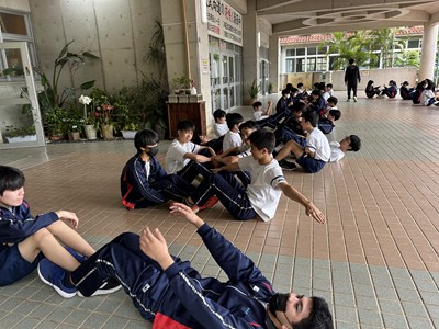 本日、全学年の身体測定が行われました。去年よりどれだけ身長が伸びましたか?ぐんぐん成長している2年生です。視力検査も真剣に取り組んでいました。体育館が使用できない3年生の体育の授業は、生徒玄関前で2人組のトレーニングです。さすがの3年生は腹筋運動も素早かったです。1年5組さんは校内の植物や昆虫を観察して写真を集める活動を行っていました。花と緑と昆虫がいっぱいの浦西中は対象がいっぱいです。野外活動も楽しそうでした。