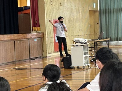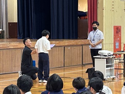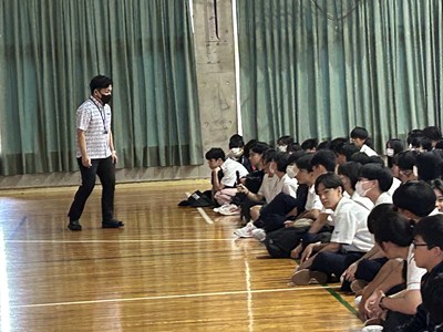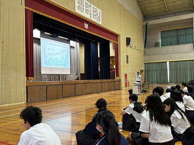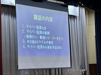 本日、1校時は沖縄県警察本部少年課から講師をお招きし、サイバー犯罪防止教室が行われました。講師をしていただいたのは課長補佐の棚原さんです。私たちの身近に潜むSNSでのトラブルや犯罪の加害者、被害者になる事例を動画やイラストなどでわかりやすく伝えていただきました。近くの人で話し合って答える場面もありました。生徒のお礼の言葉では、これから自分がとる行動に責任を持つことの大切さや想像力を持って相手を傷つけることのないよう注意することの大切さがつづられていました。一人一人が自分事として考える機会となりました。お忙しい中浦西中生徒のために貴重なご講話をどうもありがとうございました。