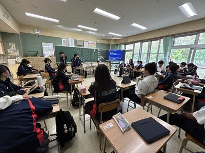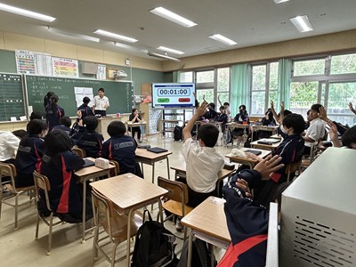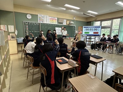 本日、2学年では学級スローガンをつくるため学級会を行っていました。いろいろなキーワードをグループから出し合いその言葉が何を意味しているのか説明しています。自分たちのクラスの目指す姿をみんなでイメージしながらよりよいスローガンになるよう話し合っていました。