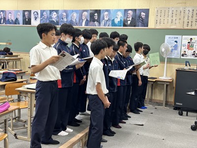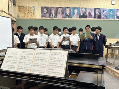 やる気はじゅうぶんで元気がいっぱいの3年1組の音楽の授業を参観しました。男声と女声パートにわかれて練習した後みんなで合わせました。「花」の歌詞の情景を思い浮かべてごらん?というアドバイスをもとに相手のパートに引きずられないように頑張って歌う1組さんでした。