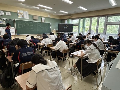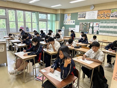 1年生の授業の様子を見学しました。入学してから1か月半がすぎ、学校生活にも慣れて授業に集中しています。また理科や国語の単元テストに、真剣に取り組んでいます。4組は美術の授業でレタリングに挑戦していました。元気なあいさつと「聴く」態度、これからの成長が楽しみですね。