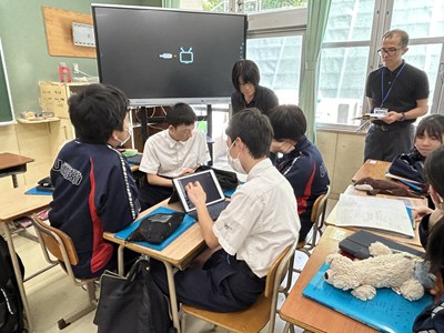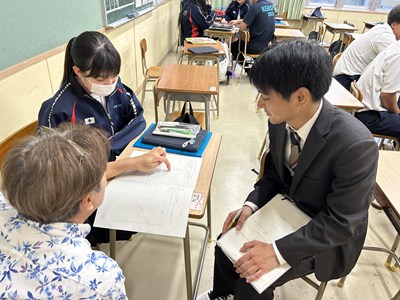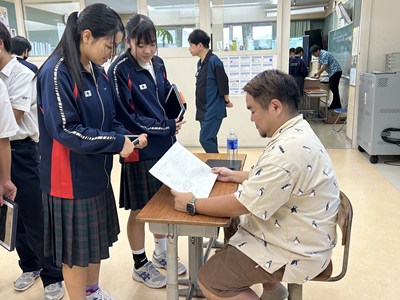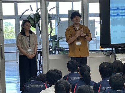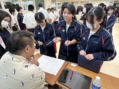 本日講師の先生方をお招きし、3年生の「ハッピームービープロジェクト」の絵コンテへのアドバイスをいただきました。先生方の総合の時間の研究授業の一環でもあります。先生方は生徒へのファシリテーションを学び合い、生徒は専門家からの辛口のアドバイスをもらえる取り組みを通して、各グループのターゲットをハッピーにする15秒のCMの絵コンテをこのあと再構成しブラッシュアップしていきます。動画制作会社CMCから濱元さん、仲村渠さん、又吉さん、沖縄テレビから普久原さん上原さんにいらしていただきました。お忙しい中ありがとうございました。皆様のおかげで充実した時間になりました。生徒の真剣な表情をぜひ見てください。