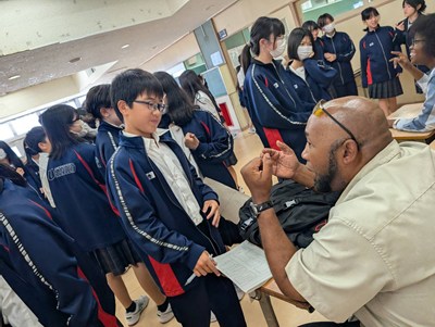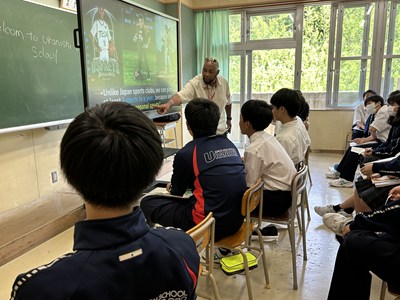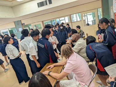 浦添市内のAETの先生方をお招きし、異文化に触れる機会となるICEプログラムを1学年で実施しました。英語の授業でどんな質問をしたいかそれぞれ考えてきたので、質問タイムでは積極的に手をあげて発表してくれました。様々な国の紹介を夢中になって聞いている生徒の横顔を見ながら、とてもよい機会に恵まれたなと心から感謝しています。