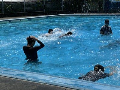 浦西中学校は今日からプール開きです。水泳の授業で事故が起こらないよう昨日の放課後安全祈願を行いました。今日は快晴、絶好のプール日和です。3年生の体育の授業では、男子も女子も歓声をあげながら1年ぶりの水泳の授業を楽しんでいました。