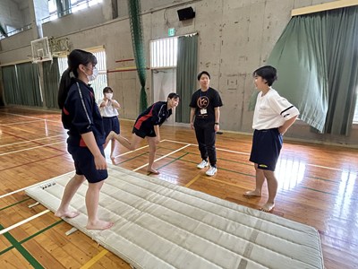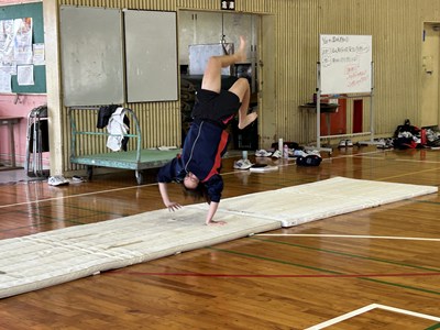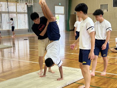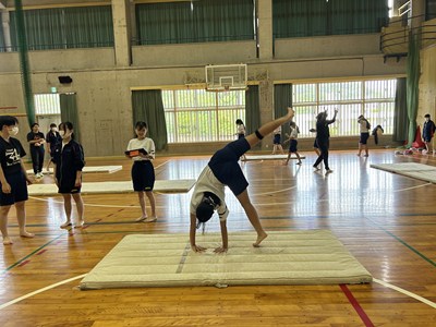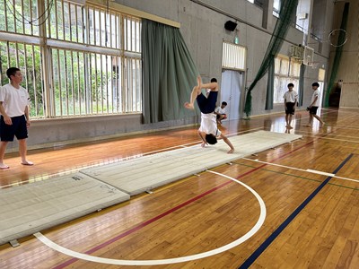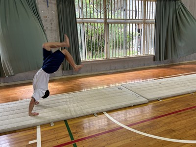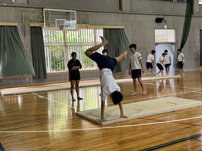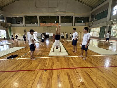体育館で行われている3年生の体育の授業を参観しました。「ほん転技の発展技に挑戦しよう」というめあてのもと、友達同士アドバイスし合いながら取り組んでいました。タブレットで動画を撮り合って確認したり、起き上がるためにはどうしたらいいよと助言をしたり、どのグループも声をかけ合いながら学び合いの空気がとてもよかったです。本村先生にも褒められました。さすが3年生ですね。