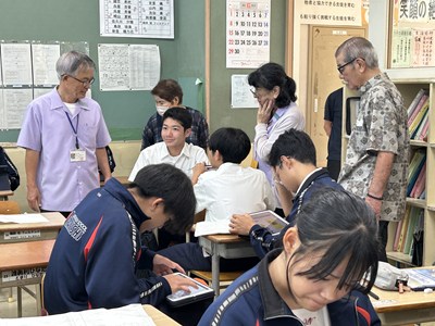 今日は参観日です。地域の自治会長の皆さんと民生委員の皆さんをお招きし、本校の生徒の授業の様子を見ていただきました。学級には顔見知りの生徒もいたようで、「頑張っているね」と声をかけていただき、生徒の皆さんもとてもやる気を出していました。その後給食をいただきながらランチミーティングです。「授業のスタイルも昔とは全然違いますね」「落ち着いて学習していますね」と感動されていましたよ。