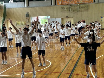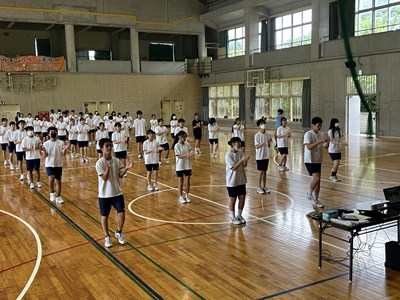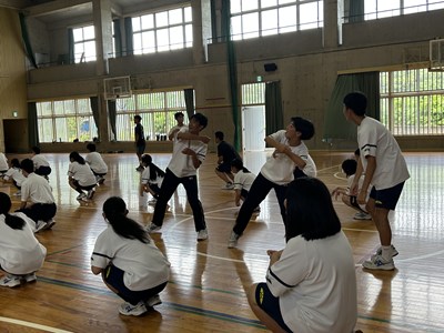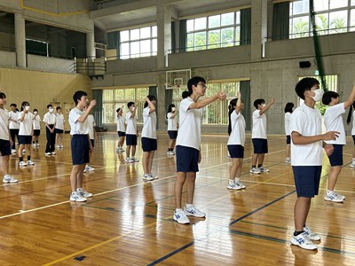 3年1組と2組の体育の授業を参観しました。浦西High祭のプログラムにもなっているダンスの振り付けをグループで練習していました。男子のパワーがすごくて大きなかけ声が体育館いっぱいに響き渡っていましたよ。これからみんなで振りを合わせて、素晴らしい演技に仕上げてくださいね。