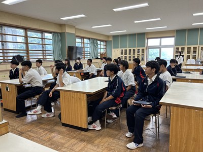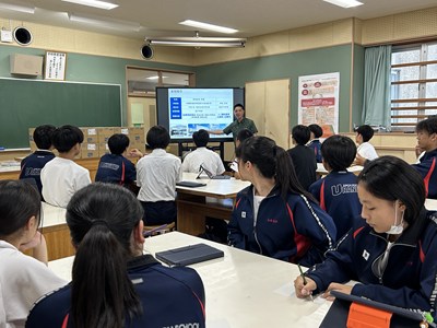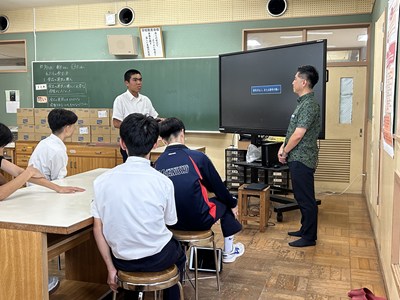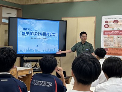 本日、各部活動代表者に向けて、熱中症対策講座が行われました。講師を務めて下さったのは株式会社「琉薬」の國仲さんです。私たちの体の中の水分や塩分のバランスがどうなると症状が出てくるのか、熱中症だと思った時の対処法などについて詳しくお話を聴くことができました。また、琉薬の國仲さん、大城さんからポカリスエットの贈呈もありました。高パフォーマンスを目指して、熱中症対策をしっかりと行い部活動に励みましょう!今日はお忙しい中、貴重な講話をどうもありがとうございました。