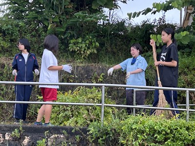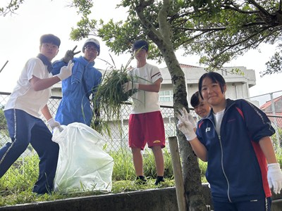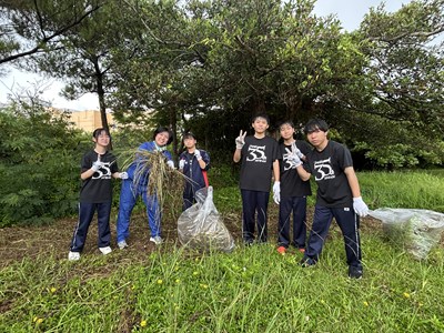 小雨がパラついている中、浦西High祭に向けての2学年PTA美化作業が行われました。毎日少しずつ先生方が草刈り機で刈った草をみんなで集めました。お父さんお母さん方のお力も借りて緑が多すぎの浦西中学校が少しずつきれいになっています。雨の中ご協力に感謝いたします!チーム2学年職員もレンジャー姿で頑張りました!皆様お疲れさまでした!