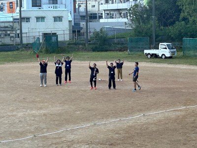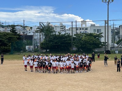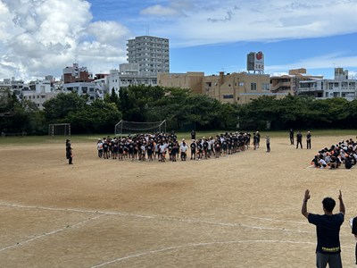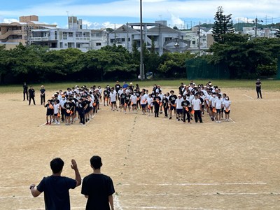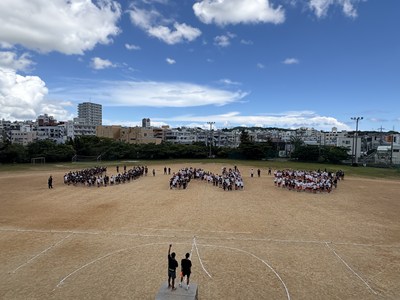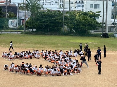運動場で人文字練習