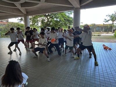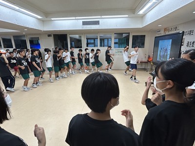 6校時はそれぞれ団ごとに場所を割り振って団シングパフォーマンスの練習を行いました。振り付けや声出しをそろえる団、隊形移動を頑張る団、1年生をリードする先輩方の力量が問われます。少しずつ団として成長していくようです。