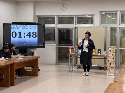 本校の図書委員会の読書月間の企画として、ビブリオバトルが開催されました。図書委員の皆さんで予選を行い、本選に出場したのは1年生2名、2年生2名、3年生1名の計5名です。ビブリオバトルは「知的書評合戦」とも呼ばれ、発表者がおすすめの本の魅力を3分でプレゼンし、会場からの質疑応答を2分間行います。沖縄国際大学の山口教授とゼミの大学生、市内の図書館司書の皆さんの前で堂々と発表し、プレゼン力を高く評価していただきました。読書の秋、ぜひ皆さんもおすすめの本を図書館で手に取ってみてくださいね。