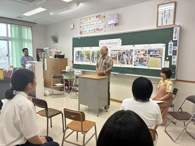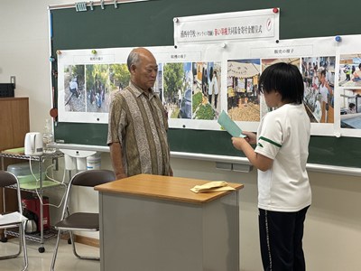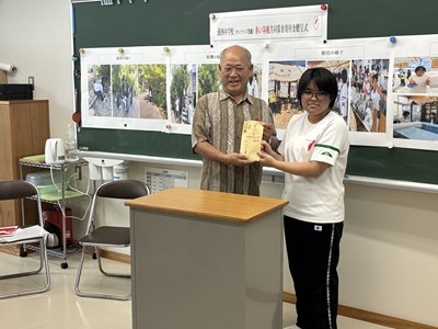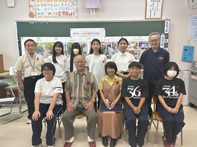 地域の皆様のご協力をいただいて、サンライズ楽級の皆さんが浦西High祭で取り組んだ「浦西マルシェ」の売り上げを、赤い羽根共同募金への寄付金として贈呈する贈呈式が行われました。浦添市社会福祉協議会の久貝会長に、生徒代表からマルシェの活動報告を行い寄付金として贈呈しました。この活動を通して、社会とのつながりや少しでも貢献したいという思いに気づける貴重な体験になりました。みんなの一歩がよりよい社会と未来につながっていますよ!