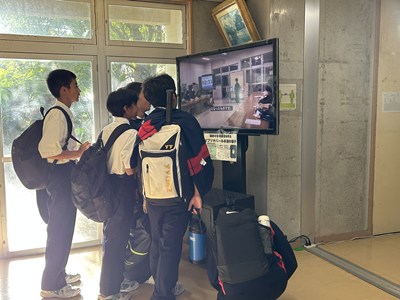 最後の画像は登校時に廊下で配信中のビブリオバトルの発表に足を止める1年生の様子です。読書月間の取り組みとして仲間の頑張りを認めるよい雰囲気が伝わってきますね!