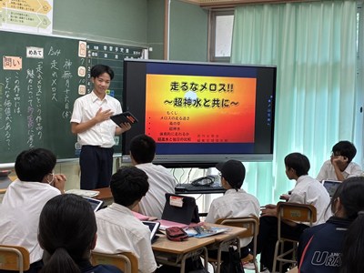 国語の研究授業が2年3組で行われました。「走れメロス」の魅力を探究し、多面的に読み解こう。という授業で、それぞれ自分なりに物語の魅力について様々な側面から分析し、交流する授業でした。自分で準備した分析シートをもとに話したくて仕方がない様子が一人一人から溢れていました。物語の魅力はどこにあるのか、じぶんなりに探究した結果、根拠を持って星をつけられる浦西中生も頼もしいです。お互いの気づきにたくさん共感できる貴重な時間でしたね。
