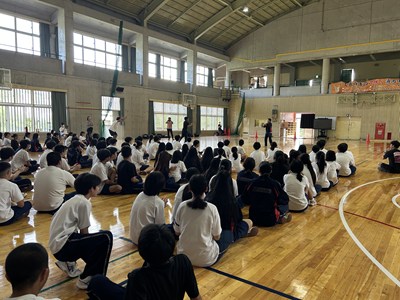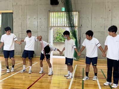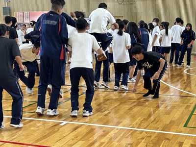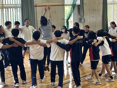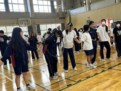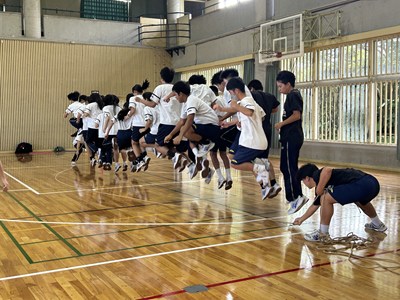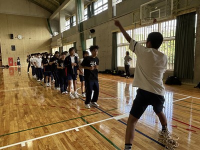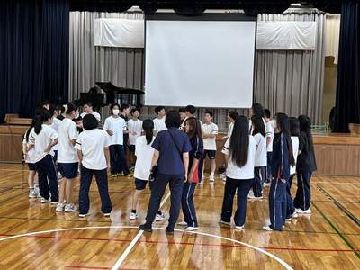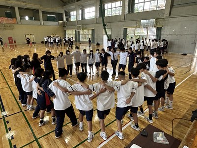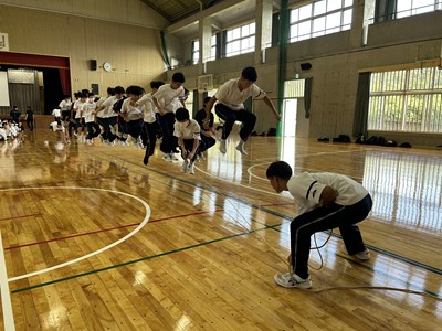 合唱コンクールに向けて学級の絆を深めている3学年が、学年朝会で「学年High祭」と題しレクを実施しました。千変万化の3つの種目、フラフープくぐり、台風の目、大縄跳びの3種目を連続で行いタイムを競いました。作戦会議、円陣を行い、短い時間ではありましたがコンパクトな学年High祭ができました。今日も元気な3年生でした。