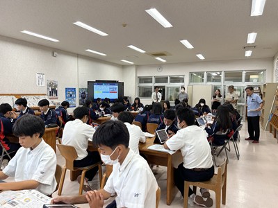 本日、市教育委員会より銘苅教育長はじめ、教育委員の皆様の学校訪問がありました。浦西中学校の授業の様子や学習環境をごらんになって、様々なアドバイスをいただきました。生徒の皆さんの一生懸命授業に向かう姿をとても褒めていただきましたよ。今日は断水の影響で午後の授業や部活動もなくなりました。また明日から通常通り頑張っていきましょう!