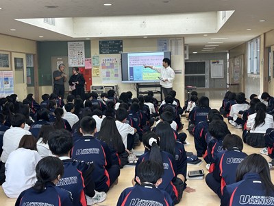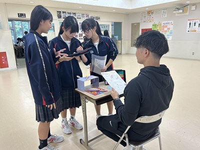 金曜日の午後は総合の時間です。1年生は当山小6年生に向けてキャリハピ祭で発表するための準備が始まります。成果物で発表するのか、実演するのか、各会社で広報や会計など役割を決めて実際に動き出しました。2年生はハピトラ祭当日に提案できなかったチームがフロアで先生方にプレゼンをして批評してもらっていました。3年生は探究のデジタルポートフォリオをまとめつつ、受験に向けての写真撮影を並行して行っていました。それぞれの学年がなごやかで平和な時間を過ごしています。