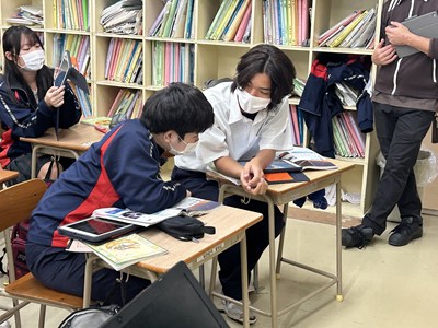 本日2校時、3年3組で南武志先生の研究授業が行われました。日食や月食はどのように起こるのだろうか?という問いに向かって、ペアワークで解決していきます。説明し合うとなるとあちこちで手を使って位置関係を示すなど一生懸命な姿がありました。太陽と地球と月の大きさがどれだけ異なるかが示され南先生から問い返しがあると、生徒から「遠近法」という言葉が出てきました。日食や月食がめったに起こらない理由についてもみんなで考えていきました。理解できたことは実際にアウトプットして確かめることが大切ですね。