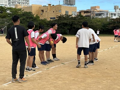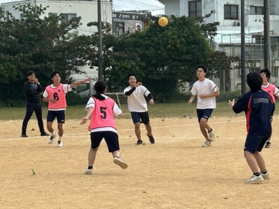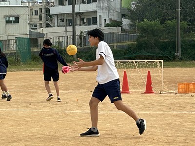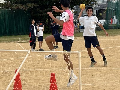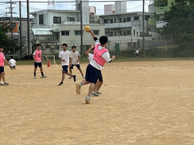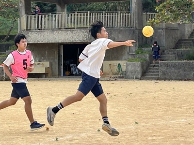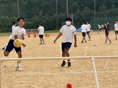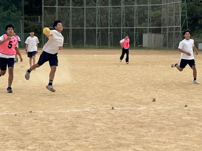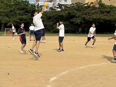 体育科の友利彬彦先生によるハンドボールの研究授業が行われました。ゲームを通して自分自身がどのように動くことが必要かを考える授業でした。タッチ鬼というウォーミングアップでも楽しみながら空間認知能力を意識させています。2対1でゴールの練習をした後男女混合チームでゲームを行いました。1時間全員が声をかけ合いながら、空間を意識して動くことができていました。6校時の体育でこんなに元気な3年生の姿が浦西中の良さですね!