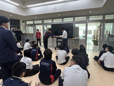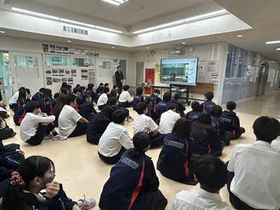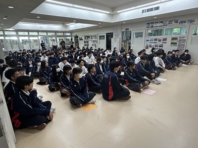 学年朝会のフロアをオンラインでつなぎ、前半に仲宗根教頭先生からあいさつをしていただきました。月曜日からたくさんの生徒の皆さんが教頭先生に会いに来てくれています。浦西中学校の生徒は本当にコミュニケーションを通して仲良くなるのが上手ですね。その後、各教科の表彰や、総合のプロジェクトの説明、生活指導のお話などが各学年で行われました。