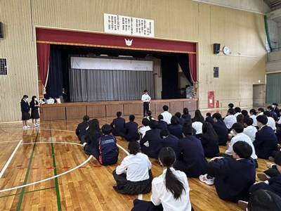 修学旅行を明後日に控え、荷物点検と出発式を行いました。生徒代表のあいさつでは旅行団全員で協力して素晴らしい思い出に残る旅行にしようと再確認し、旅行社の上原さん、2学年PTA学年委員長の具志堅さんからもごあいさつをいただきました。安全・安心に心がけみんなで成長する修学旅行にしましょうね!最後の4校時は学級でレク大会の練習をしています。