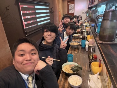 長崎自主研修の様子です。少し雪がちらつく様子もみられ、ホテルに向かうバスでは雪景色も見られました。バスで眠ってた生徒も飛び起きて沖縄では見られない景色を眺めてました。