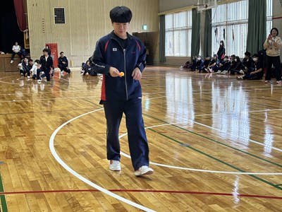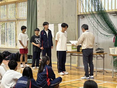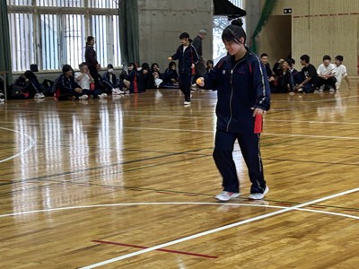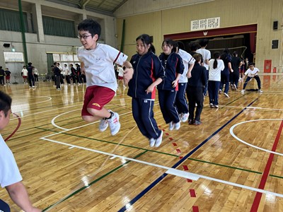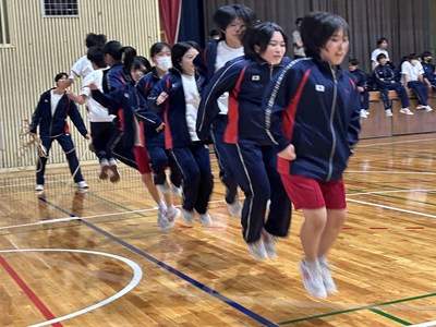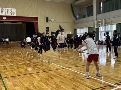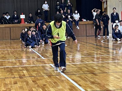 5校時に2学年のレクを見学しました。修学旅行で培った素晴らしいチームワークを発揮して、思いっきり楽しんでいました。珍プレーも続出し担任の先生も一緒にピンポン玉リレー、大縄跳び、スリッパリレーで合計点を競いました。この仲の良さをずっと大事にしてほしいです。