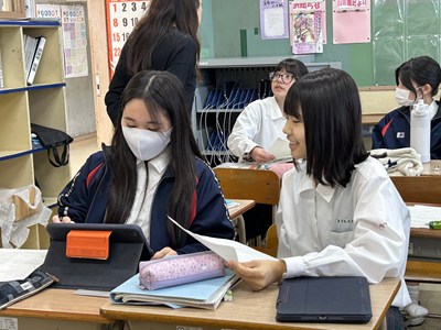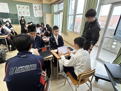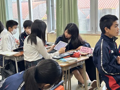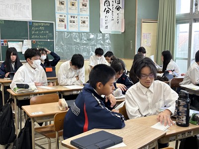 1年4組の英語の授業で元気な声で会話をしていました。これからパフォーマンステストが行われるとのことでした。友達とペアで一生懸命練習する人もいれば、1人で覚えようとしている生徒もいます。みんな頑張ってくださいね!
