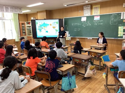 11月5日(火)浦添市内の小学校のAETが来校してくださり、4年生にいろいろな国の文化を教えてくれました。